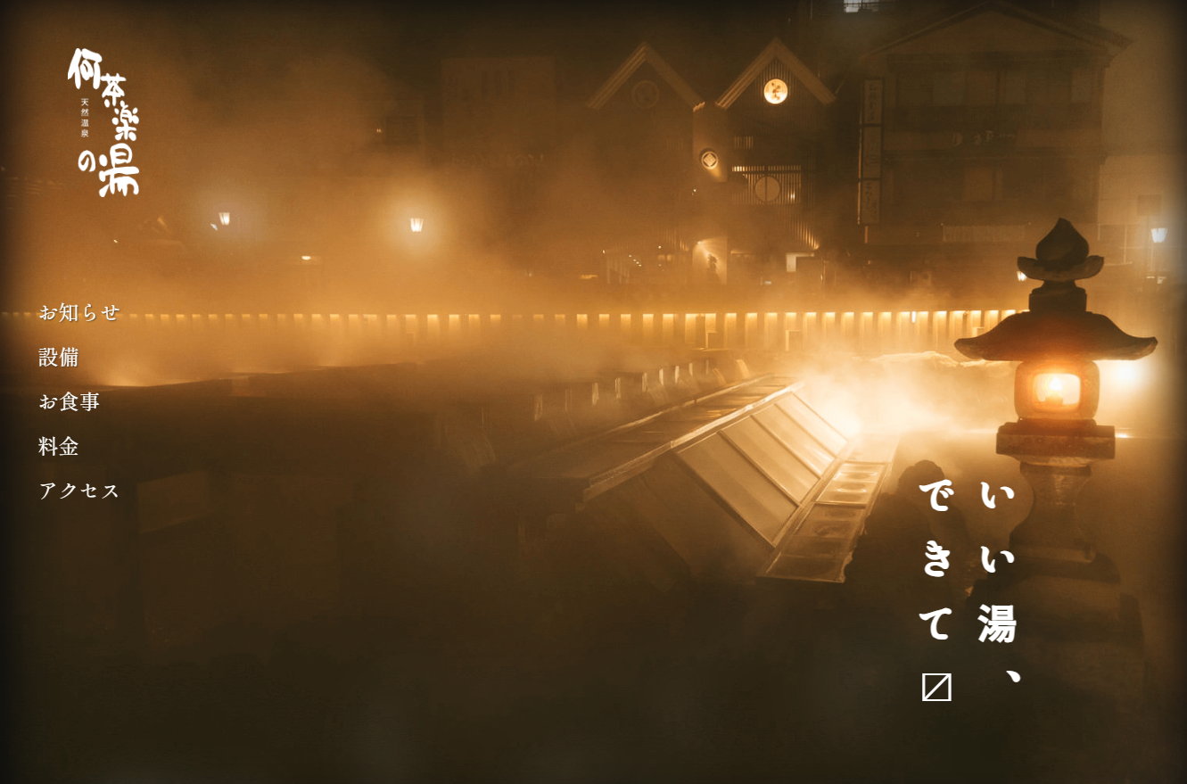 【サイト作成】天然温泉何茶楽の湯(架空:スーパー銭湯)